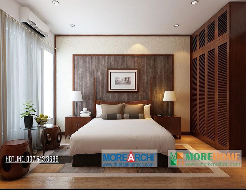 Thiết kế nội thất phòng ngủ hiện đại với sự kết hợp giữa tông màu nâu và trắng sẽ giúp tạo nên một không gian ấm cúng và thư giãn.