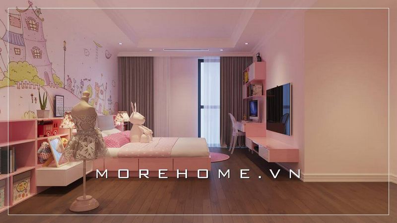 nhưng vẫn đẹp Tạo ra một không gian phòng ngủ hồng sắc cho bé gái với những đồ nội thất gỗ công nghiệp hiện đại, đơn giản nhưng vẫn đẹp.